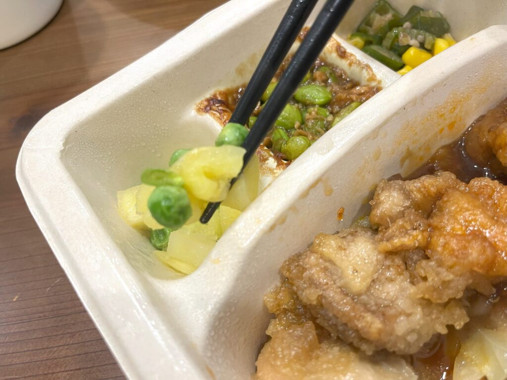 枝豆のカレー風味は、普通にごはんにかけて食べてもいいくらい、しっかりとカレーをしています。