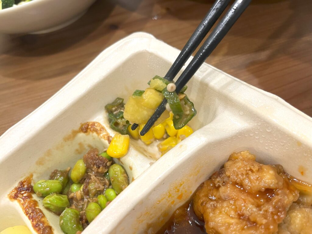 コーンとオクラの生姜醤油 | ![]() | 生姜が効いている |